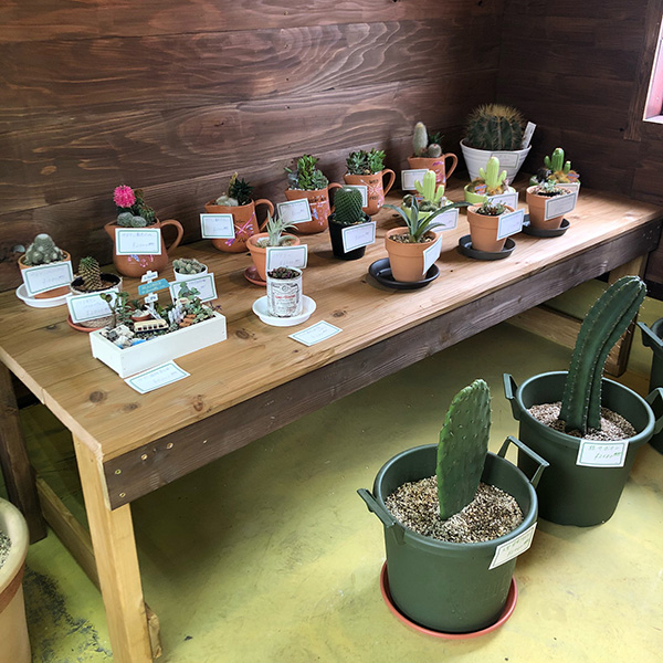 ぷっくりと丸みのある多肉植物やトゲトゲした多肉植物など、様々品種を組み合わせています。